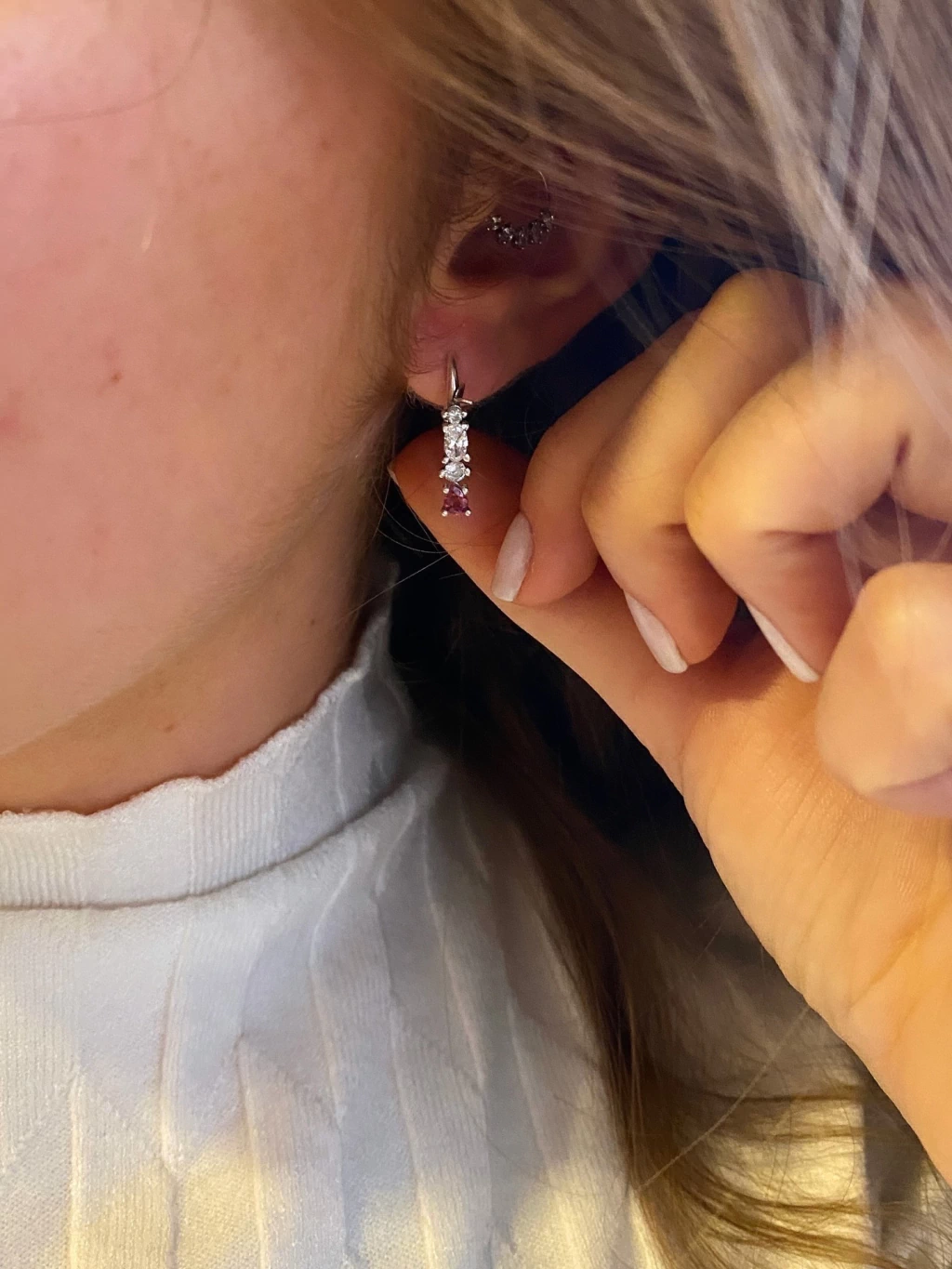 Brinco em Prata 925 com pedras incolores, ametistas, tanzanitas e granadas naturais