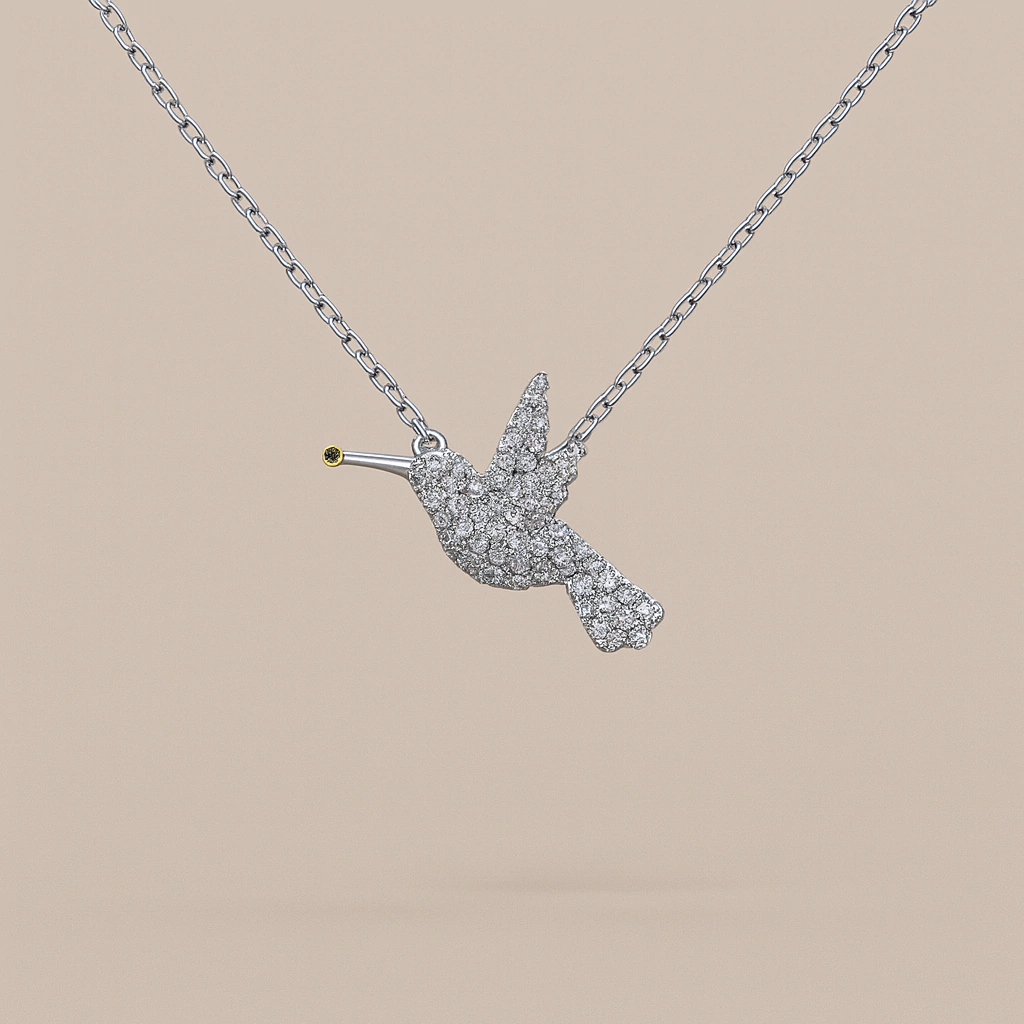Colar Beija-Flor Maffini em Prata 925 Encante-se com este colar delicado e sofisticado, todo cravejado com pedras brancas que brilham em cada detalhe. Na ponta, uma pedra amarela que traz um toque de luz.